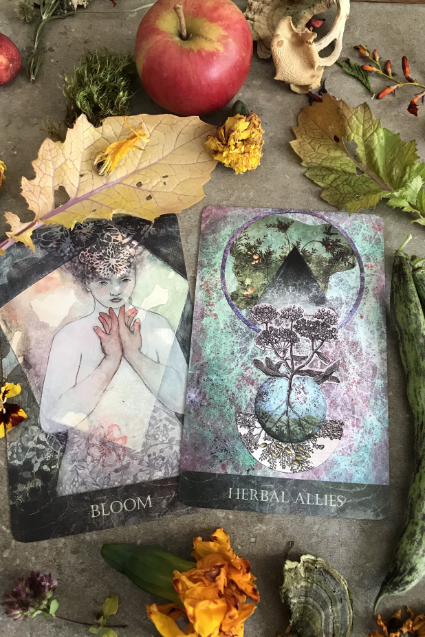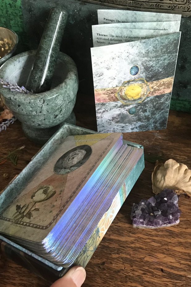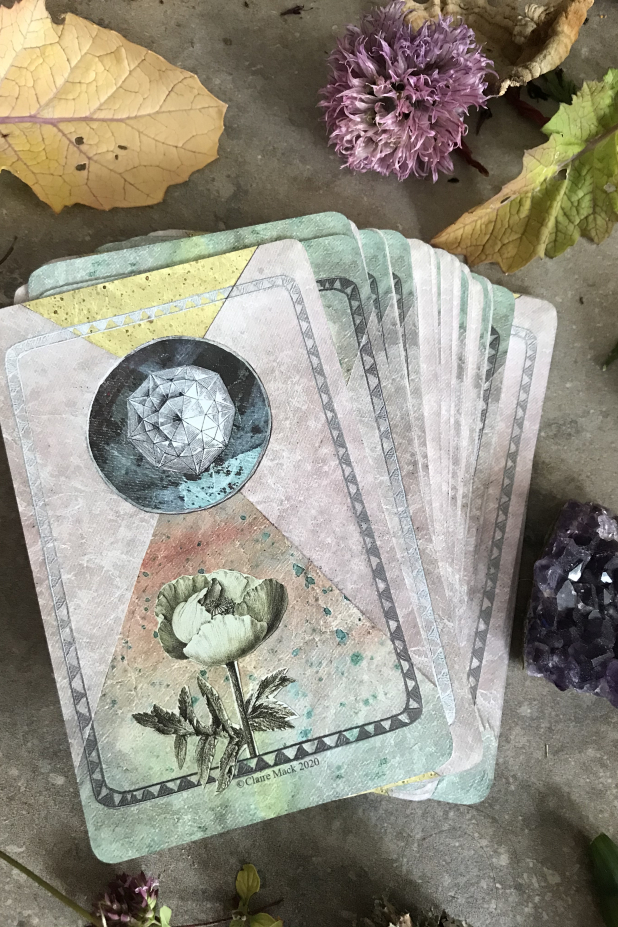 The Faceted Garden Oracle makes a great companion to my first deck, The Illuminated Earth Oracle, as well as pairing well with other tarot and oracle decks. Inspired by the symbolism and metaphor of the garden, the artwork was intuitively hand-painted using a variety of collage, and other mixed media.