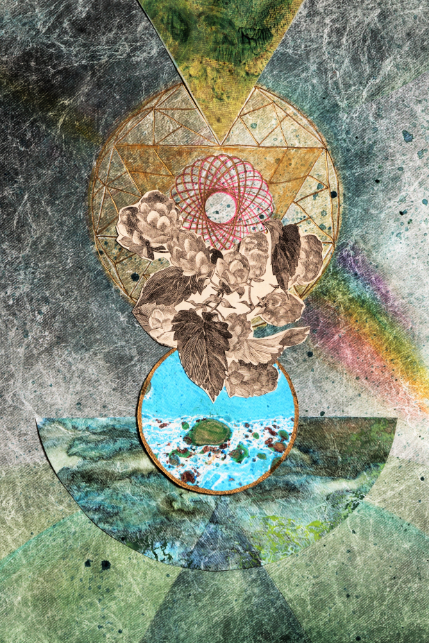 Mixed media collage reproduced as a high-quality archival Giclee print. Measures approximately 9"x 12" with a 1-inch white border. To order larger sizes please send me a message via the contact form.